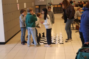 Les échecs sont bien plus qu’un simple jeu : ils développent la concentration, la logique, la patience et l’esprit sportif. Tout au long de la journée, les élèves ont démontré un remarquable fair-play, une grande motivation et un réel plaisir à se mesurer les uns aux autres dans une ambiance conviviale et respectueuse. Pendant toute la journée, les accompagnants — parents comme plus jeunes — ont également pu profiter d’un jeu d’échecs géant ainsi que de plusieurs jeux mis à disposition en libre accès, offrant des moments de détente et de convivialité en parallèle du tournoi.
